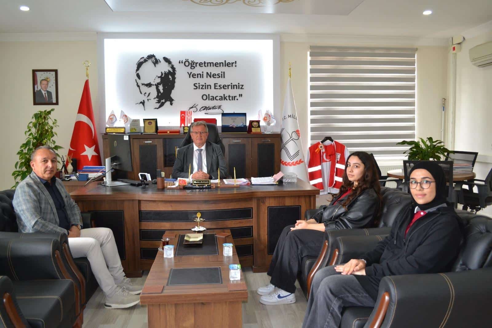İlçe Milli Eğitim Müdürümüz İbrahim CANBAZOĞLU, ilçemizin 19 Eylül Gaziler Günü programında güzel şiir okuyan Hacı Ethem Şerife Kavukçu Anadolu Lisesi öğrencilerini makamında kabul etti. Okul Müdürü Hadi YEKE'nin de katıldığı ziyarette, programda gösterdikleri gayretlerden dolayı öğrencilerimizi tebrik eden Müdürümüz, öğrencilerimize hediye takdim etti.